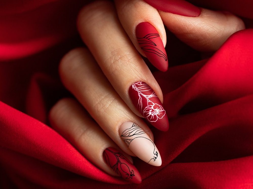 برای طراحی ناخن شب یلدا تنها کافی است نگاهی به سفره‌ی پر رنگ و لعاب و زیبای یلدای خود بیاندازید و از جزئیات این رویداد ایده بگیرید. طرح ناخن شب یلدا ساده می‌تواند صرفا همراه با رنگ قرمز ساده‌ای باشد که یادآور انار یا سرخی داخل هندوانه در سفره‌ی یلداست. پس برای اولین گزینه، طراحی ناخن با این رنگ جذاب را در نظر داشته باشید. درواقع لاک‌های قرمز مات و براق از جمله رنگ‌های شیک و حرفه‌ای هستند که هیچ‌گاه از مد نمی‌افتند. بهترین انتخاب برای ناخن یلدایی، لاک‌های زرشکی، بورگاندی و شرابی است. برای طراحی ناخن با این لاک‌ها می‌توانید آن‌ها را با رنگ‌های دیگری مانند مشکی، سفید، طلایی، نقره‌ای، نگین‌های براق و درخشان و موارد مشابه همراه کنید و زیبایی بیشتری را به دست‌های‌ خود ببخشید. علاوه بر این، در طراحی ناخن یلدایی می‌توانید از ایده‌های ویژه‌تری استفاده کنید که در ادامه آن‌ها را نمایش می‌دهیم.