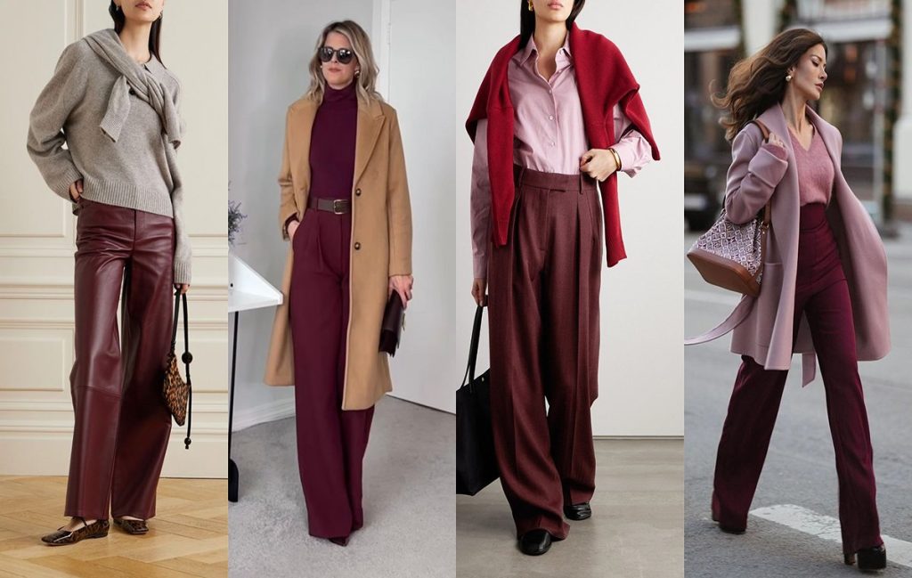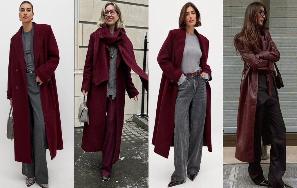 استایل با لباس‌های رنگ زرشکی و خاکستری